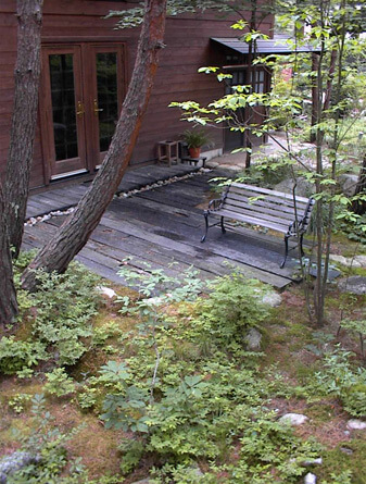 ex.1 ガラ石を形状に積み上げ枕木を敷き、 苔や下草を張って仕上げたもの